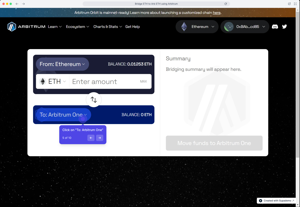 Nhấp vào "Chuyển tiền sang Arbitrum One" để bắt đầu quá trình bắc cầu.